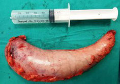 The balloon of the system now floats freely in the stomach and fills it partially.